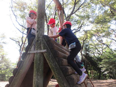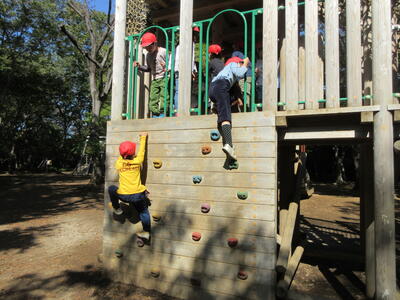 アスレチックではルールや順番を守り、譲り合いながら安全に遊ぶことができていました。