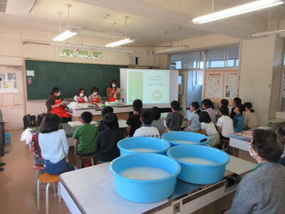 計画委員が内牧小学校クイズ、給食委員がSDGsかるたの発表を行いました。