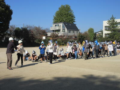 校庭から道路へ出て、当日走るコースの確認をしました。
