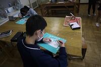 けがに気をつけながら、彫刻刀も上手に扱っています。