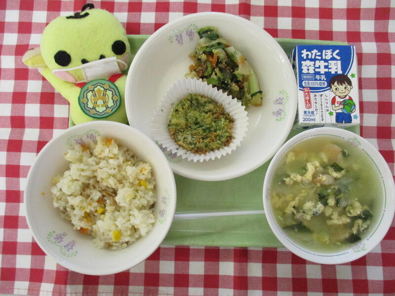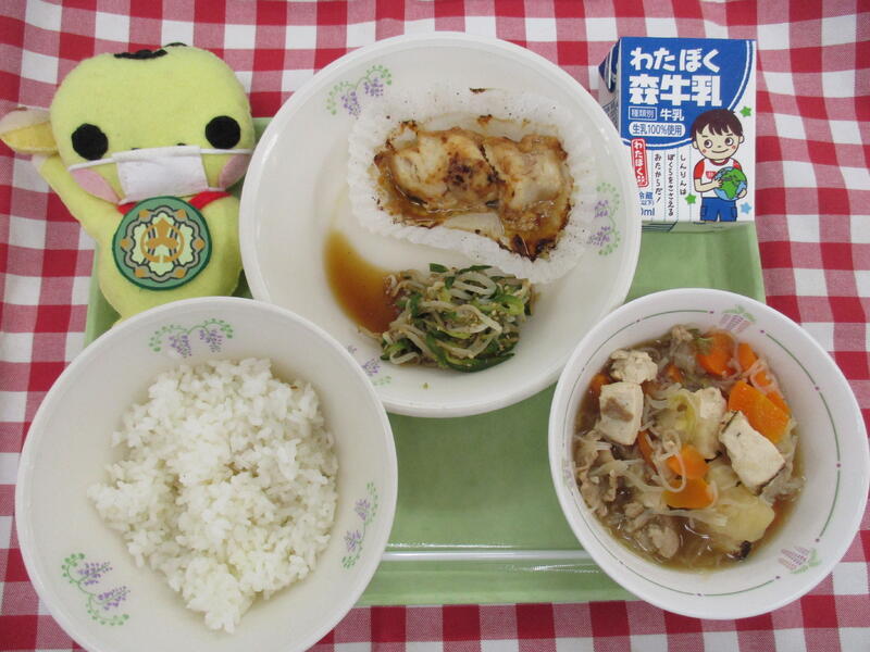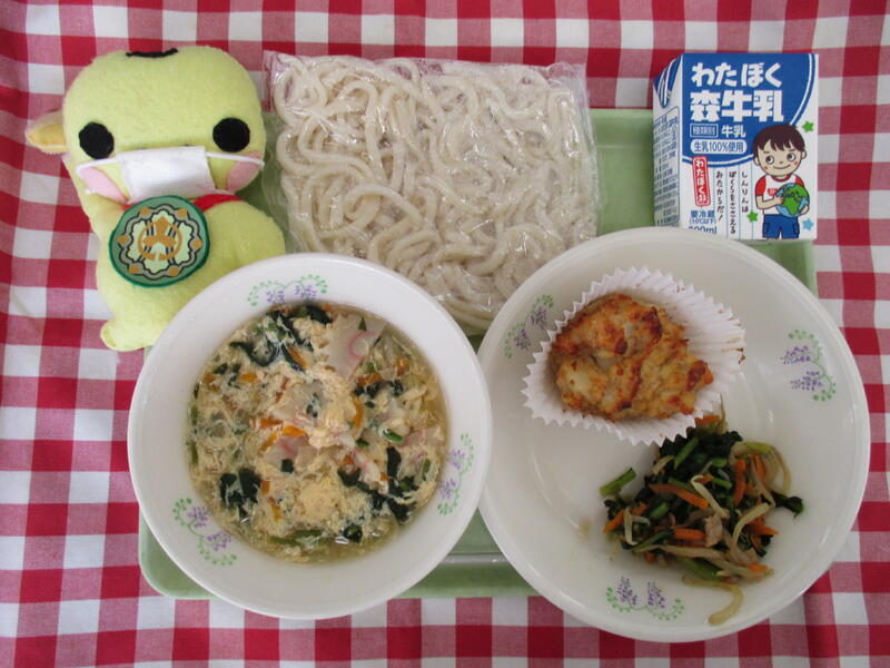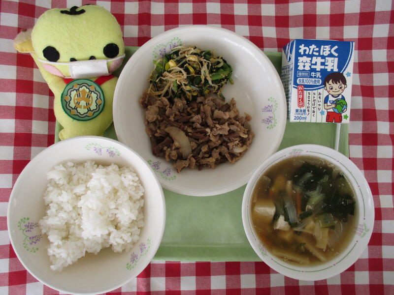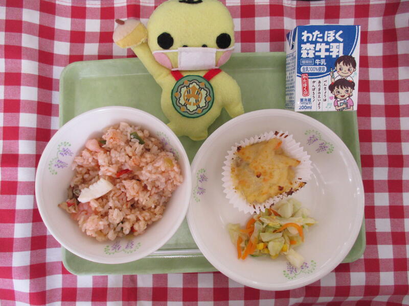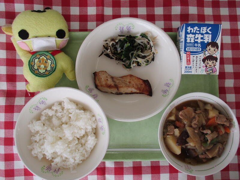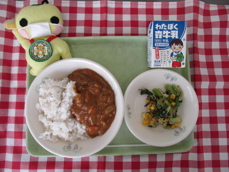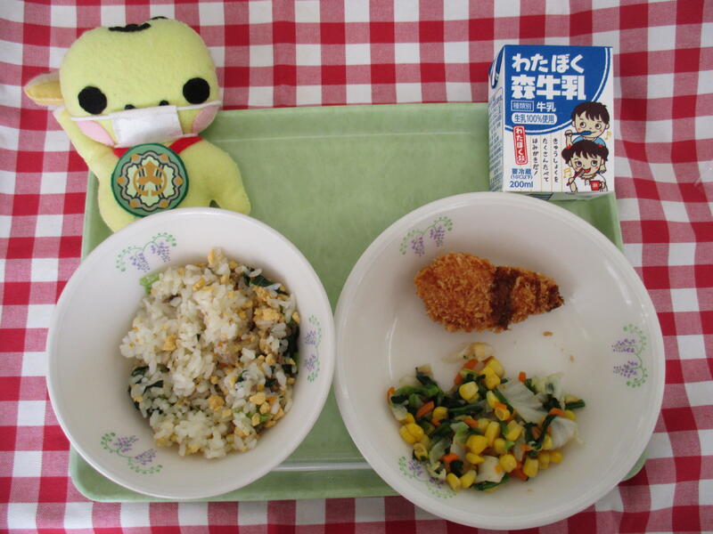 分散登校中は、全児童が同じメニューを食べられるように、2日間同じ献立を提供しています。