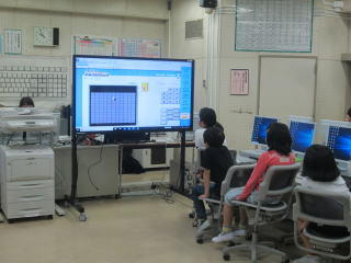 右の写真は、6年生がプログラミングの授業を行っている様子です。パソコン上の人形がどのように動くのか予想し、その予想をタブレットに書き込み、それを実際に自分のパソコンで操作して動きの確認をしました。子ども一人ひとりが意欲的にやっており、試行錯誤し、たくさん考えながら活動していました!