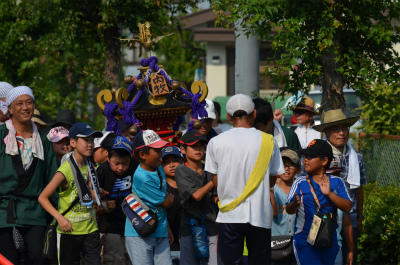 今年は、例年にない猛暑が続き、熱中症が心配されましたが、子供たちは、最後までしっかりと担いだり、山車を引いてくれました。