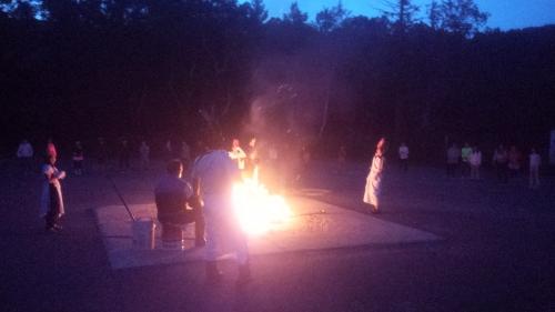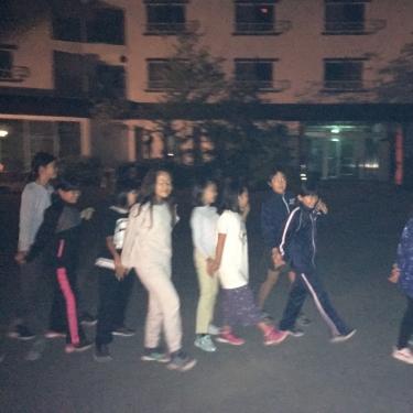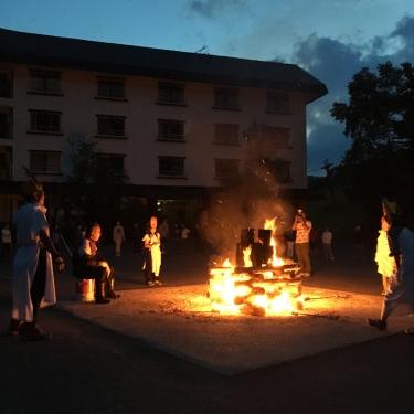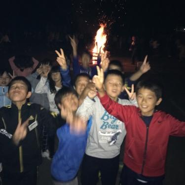 キャンプファイヤーを終え、就寝に向けて動き出しています。