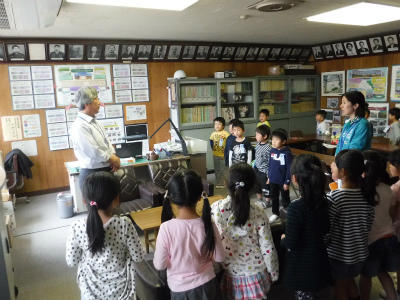 昨日は1年生の「学校探検」(1回目)でした。クラスのみんなで先生と一緒に校内を一巡して見て回りました。校長室にも3つのクラスが次々に訪れてくれました。「わあー、写真がいっぱい」とか「ソファーがあるんだ」などと、校長室の様子に興味津々な1年生。