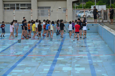 昨日は「ゴマの種まき」、今日は「プール清掃」、毎日元気です!