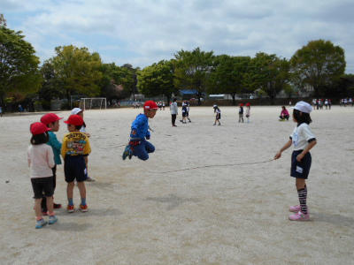 1年生が入学して早半月。今日は、2年生と一緒に「あそぼう集会」が開かれました。校庭に出てはじめの会(顔合わせ)をした後、それぞれのグループで校庭のあちこちに散らばってゲームが始まりました。2年生が、お兄さんお姉さんとして1年生をリードし、楽しく遊べていました。その姿にちょっぴり感心しました。これからも仲良くしてあげてくださいね。