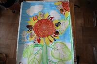 3年生は学校で育てたひまわりの花と活動することを表現しています。