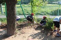 今日は、低学年の担当です。ジャングルジムやブランコの後ろ側を、落ち葉を拾ったり草むしりをしたりしました。作業後は、草や落ち葉も少なくなり、きれいになりました。