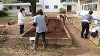 花壇を耕し、等間隔で丁寧に植えていただきました。本当にありがとうございました。