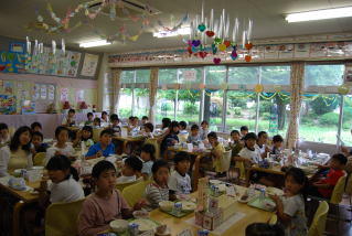 今日は8月生まれのハッピーランチがありました。8月生まれの児童・職員は物静かでみんな黙々と食べていました。写真撮影の時はみんな笑顔を見せてくれました。