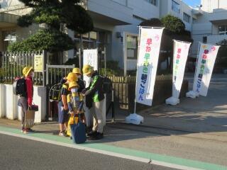 これは、登校する子供達に「おはようございます。朝ごはんを食べてきましたか」と声掛けをする活動です。