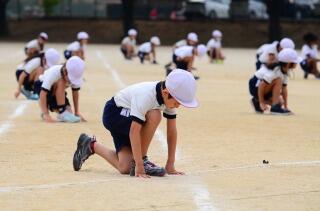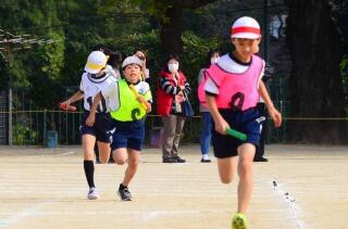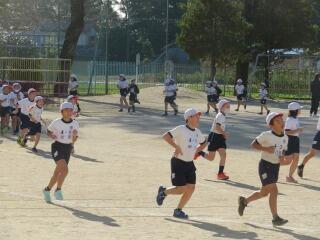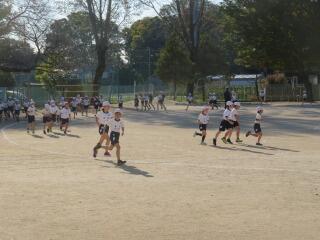 そのあと、校庭に回ると、中学年が持久走の練習をしていました。