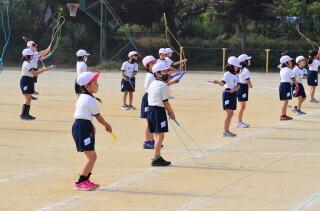 内牧小学校では例年、2年生が元気塾の方々の支援をいただきながら、近隣の畑で金ごまの植え付けをしていました。今年は諸事情により畑で活動ができないため、元気塾の方々のご厚意により、校庭の花壇にゴマを植えることができました。