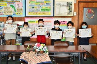 校長室で賞状をわたしました。かえるが大好きで、図書館でたくさん調べたそうです。