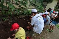 毎日、朝の水やりや草むしりなど、世話をよくしています。収穫した野菜は、家の持ち帰って食するようです。