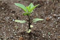 あいにくの天気ですが、金ごまは花壇に根付き、10cmに成長しました。
