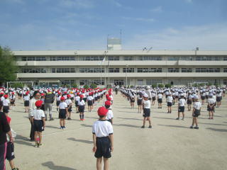 今朝はすこやかタイムがあり、今日から1年生も一緒に参加しました。1年生も含めて、体操隊形や行進の仕方の確認しました。1年生も早く様々なことに慣れるといいですね!