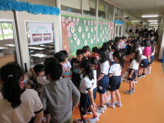 本日は離任式がありました。転退職された先生方が内牧小学校に来てくれました。久々に会って喜んだり、別れ惜しい気持ちがあふれたりしてしまう児童が見られました。児童たちの先生達に対する愛情を感じることができました。