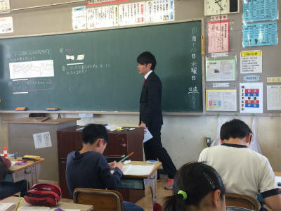 本日2校時に、春日部中学校の教頭先生と英語科の2名の先生が6年生の学級に