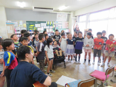しました。「校長先生はだれ」ゲームを行い、盛り上がりました。1年生からも、かわいい歌の