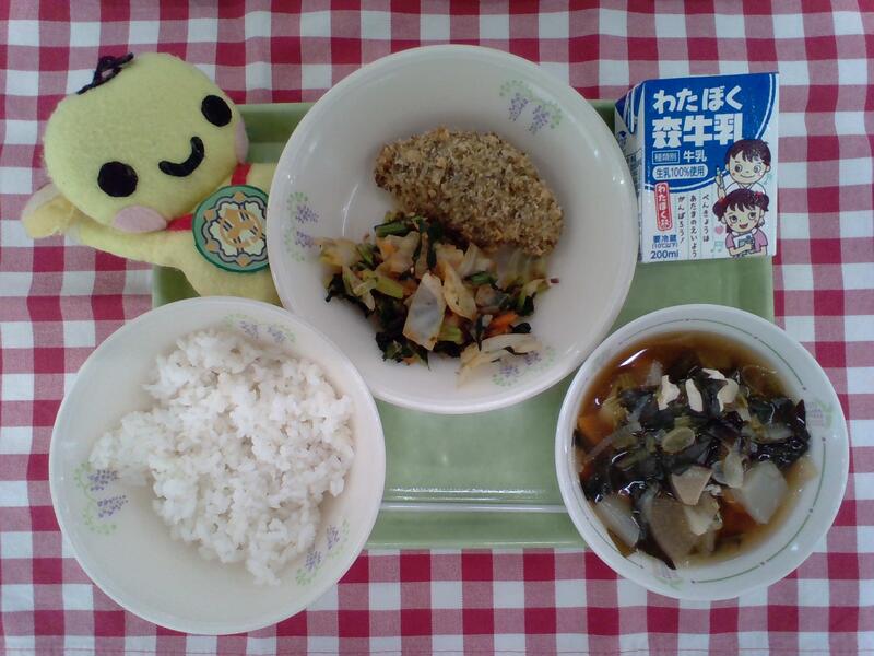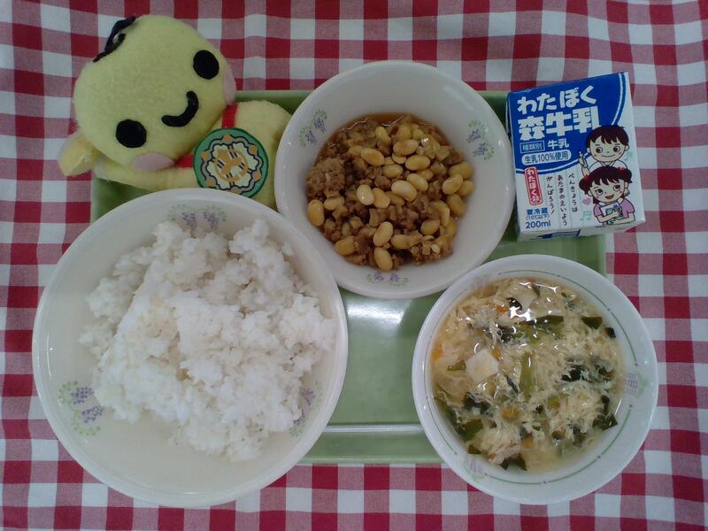 ※ 6月4日〜10日は『歯と口の健康週間』です。今日は、むし歯予防の献立を実施しました。いかや食物繊維が豊富な野菜を多く使った噛みごたえのある献立内容です。よく噛むことで、唾液が分泌され、むし歯予防になります。よく噛んで食べて、むし歯を予防しましょう。