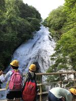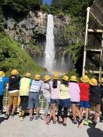 今日の華厳の滝には、素敵な虹がかかっています。内牧っ子を迎えるように