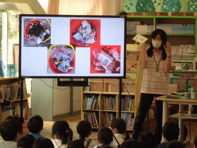 本日、講師の方を招いて、4年生が3校時に環境について学びました。