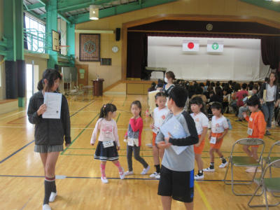 5年生のみなさんは、自分が分担された就学児を、すべての検査会場まで連れて行って検査を受けさせ、体育館までつれて戻ってきます。内科や眼科、歯科の検診の時には、着替えを手伝ったり、並ばせたりしてくれます。結構大変な仕事です。