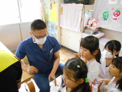 本校では、5年生の児童がお手伝いをしてくれます。とてもよくお手伝いをしてくれましたので、健診がスムーズに進みました。