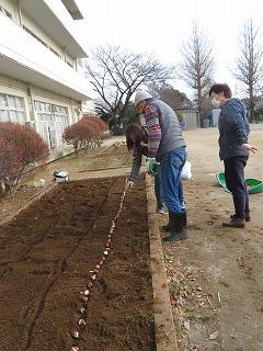 昨日、花ボラの方たちが、チューリップの球根を300球、校庭の