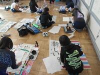 3年生は初めての書きぞめです。だるま筆を使って、画仙紙に伸び伸びと書いてほしいと思います。