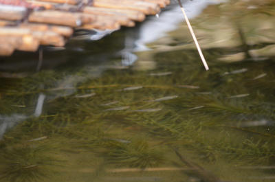 中庭では、満開の梅の枝にメジロが来ていました。また、中庭の池の中では、たくさんのメダカたちが、この暖かさに誘われて泳ぎだしていました。いよいよ本格的な春です。