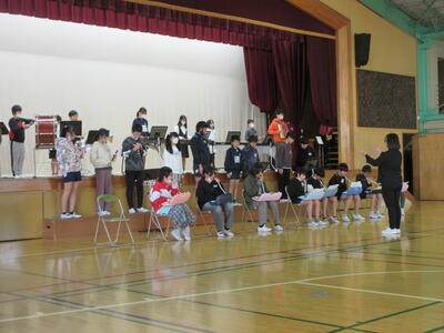 始めに、卒業式に向けて、国歌、校歌や「変わらないもの」を歌いました。3月に向けて、思いや表現を深めていきましょう。