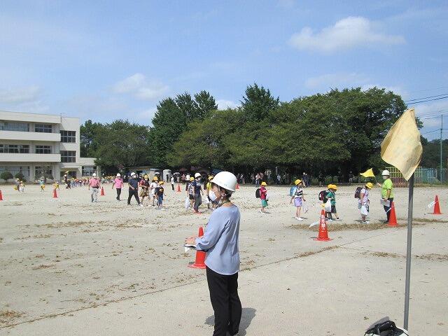 その後の引き渡し訓練では、強い日差しが照り付ける中、保護者の皆様にもご協力いただきまして、無事に終えることができました。お忙しい中、残暑厳しい中、保護者の皆様にはご来校いただき本当にありがとうございました。