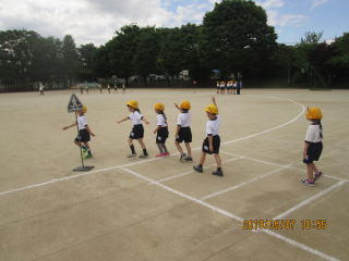 2時間目に1、2年生合同で交通安全教室が行われました。標識の種類や交通ルールを春日部警察署の方々に教えていただきました。