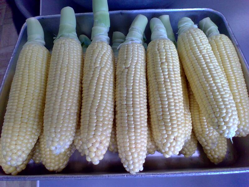 とうもろこしは給食室で洗って切った後に、蒸して全校でいただきました。