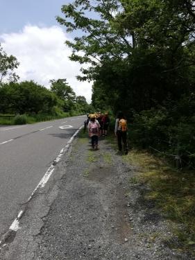 このあと、写真の背景になっている斜面を登ります!そこを抜ければ、宿まであと少し!!