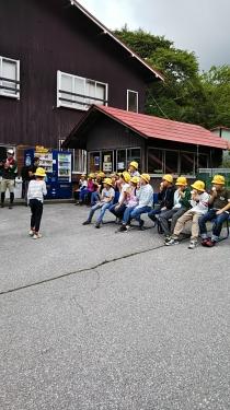 クラスごとに分かれて、ガイドさんの説明を聞いています!