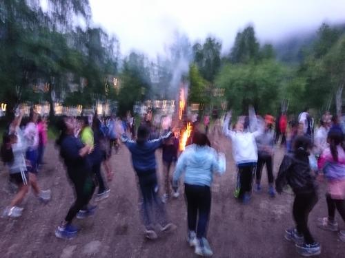 火之神に手を振っています!後ろで一般の方も手を振っています(笑)