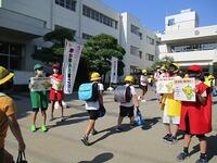 給食委員会の子供達が、朝、校門で『早寝・早起き・朝ごはん運動』に取り組んでいます。