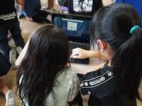 1時間ごとに学年を割り振り、タブレットにログインしました。3年生以上は自分で行い、1・2年生は高学年の支援を得ながら取り組みました。