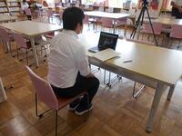 2学期始業式を行いました。図書室から各教室へリモート開催です。
