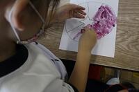 1年生が育てたアサガオの花を使って、たたき染めをしました。