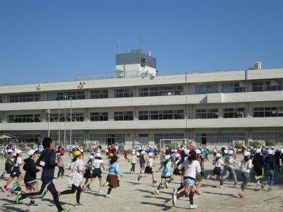 今日から朝マラソンが始まりました。体調が悪い場合や朝の係活動など用事がある場合を除き、全校児童が校庭に出て朝マラソンに取り組みます。