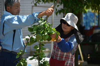 折原さんからは、内牧で梨が作られるようになった訳や歴史、梨のことやブドウのこと、栗の花のこと、土作りや害虫対策など、たくさんのことをお話しいただきました。私達が住んでいる内牧地区が果樹で有名になったのは、たくさんの方々の努力があったことがよくわかりました。また、折原さんのお父さんの前の代からあった柿の木のことも教えてもらいました。200年以上とも言われる古い柿の木でしたが、内牧地区の歴史をずっと見てきた柿の木なので、すごいなと思いました。