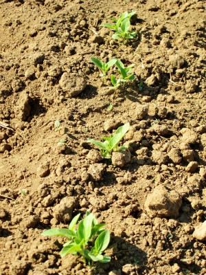 梅雨に入った模様・・・という天気予報がありましたが、このところちっとも雨が降っていません。降ってもにわか雨程度で、農作物を潤すような雨は、まだのようです。久しぶりにゴマの畑に行ってみますと・・・、