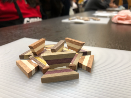 箱根といえば寄せ木細工!説明を受けています。時刻ぴったりに始められました。きちんと行動できていました。明日の準備もばっちりの班もあるようです(^^)
