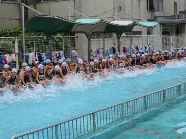 朝の時間にプール開きを行い、今日からプール学習が始まりました。