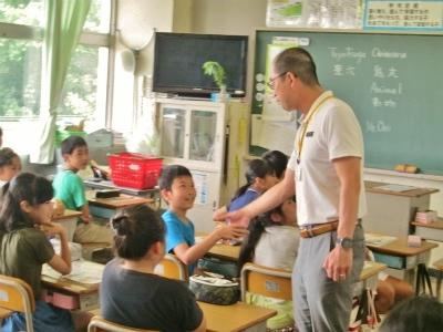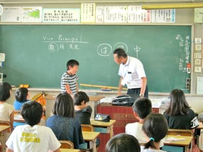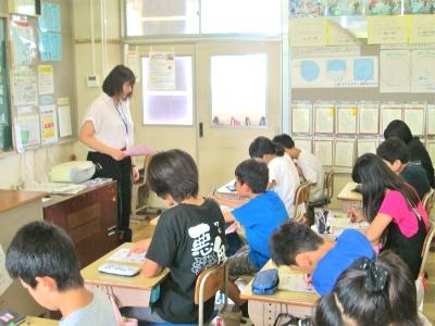 本日2校時に、春日部中学校の教頭先生と英語科の2名の先生が6年生の学級に